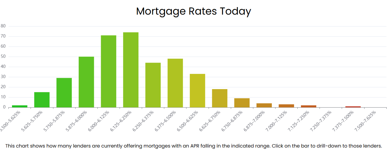 Picture this: You get a quote for 6.5%. Our benchmark says 6.25%. You might think you're getting ripped off. But then you look at our distribution chart and see that for someone with your credit score and down payment, most lenders are actually at 6.625% or higher. Suddenly, your quote looks pretty good!